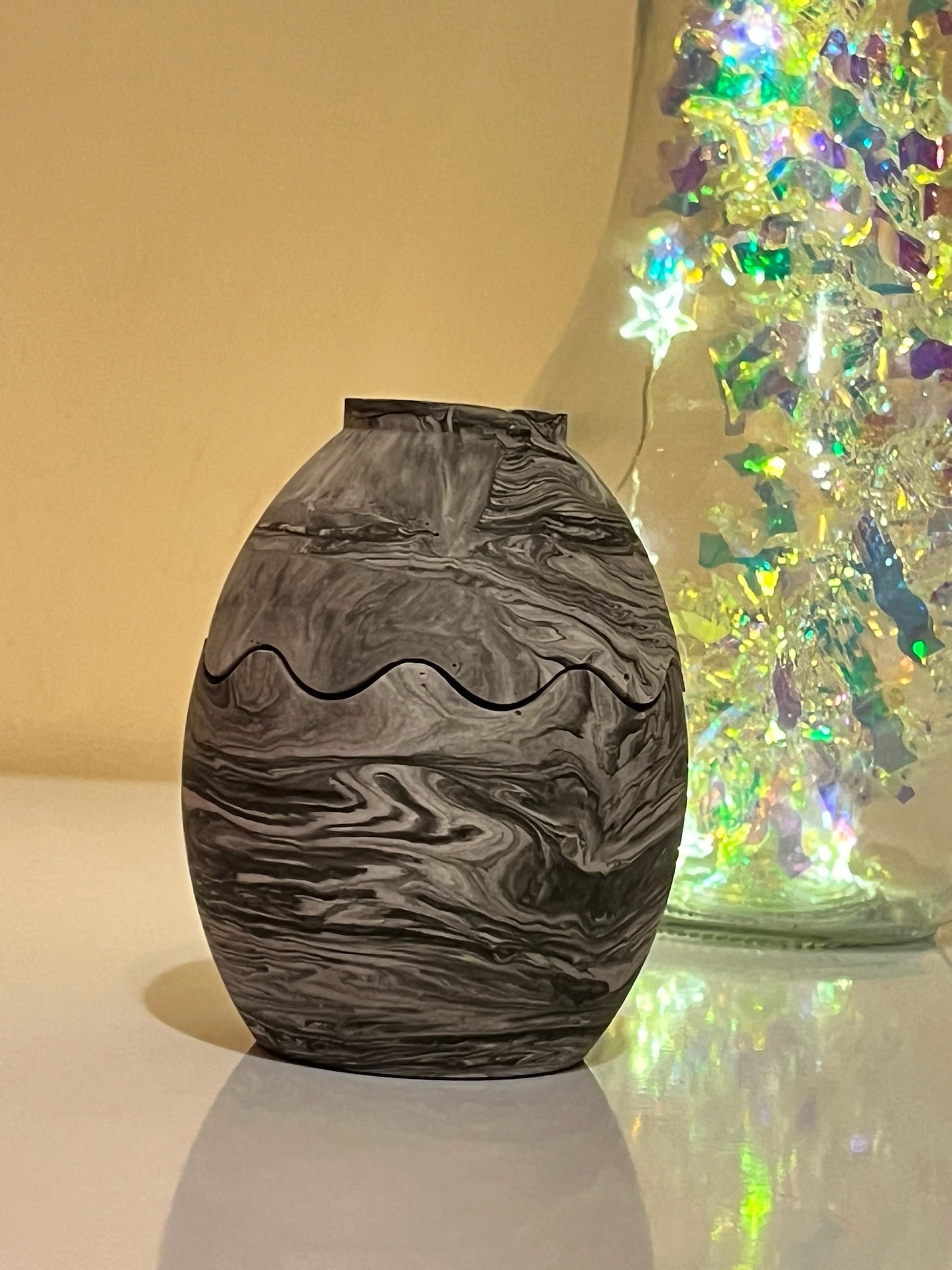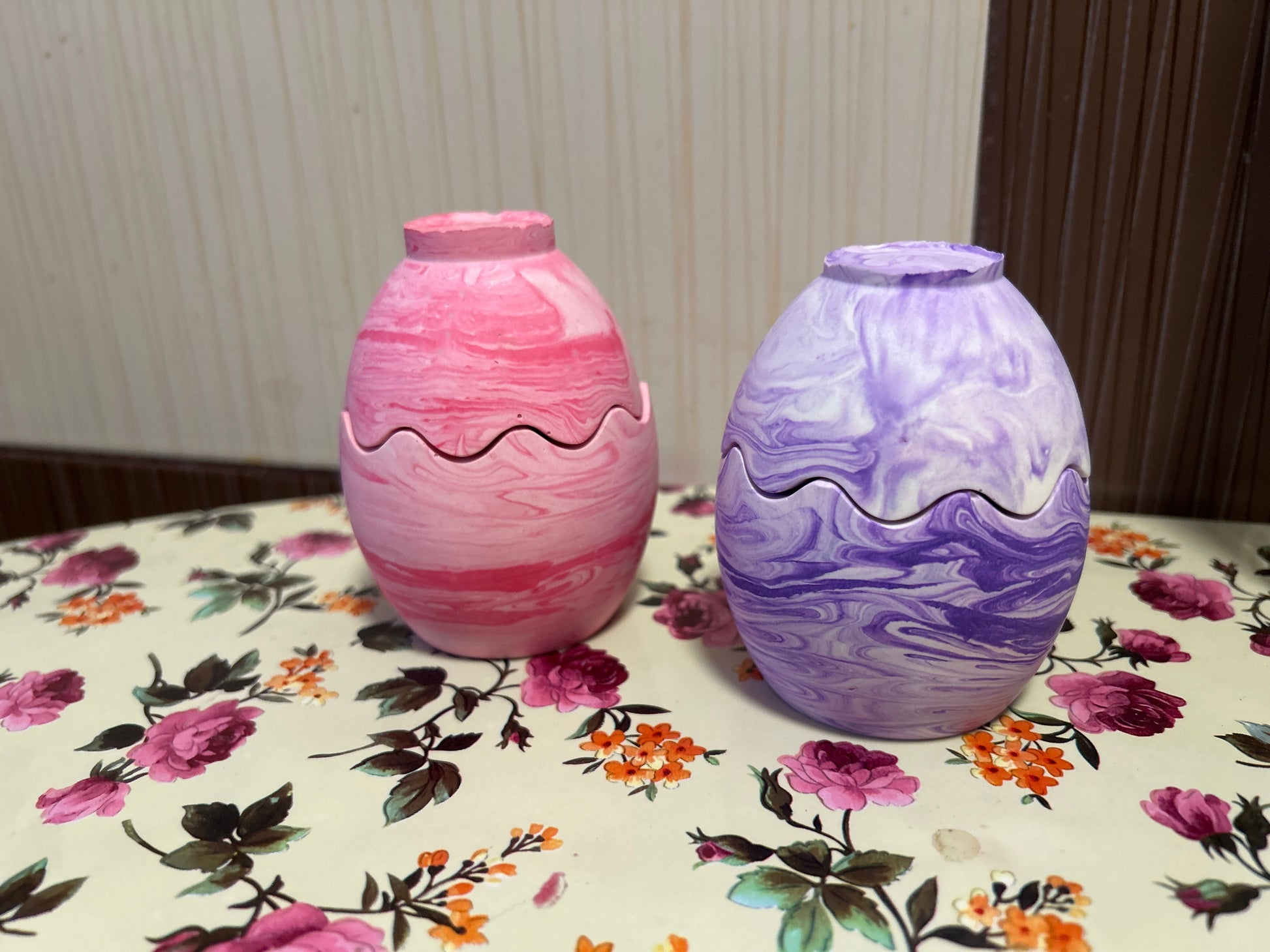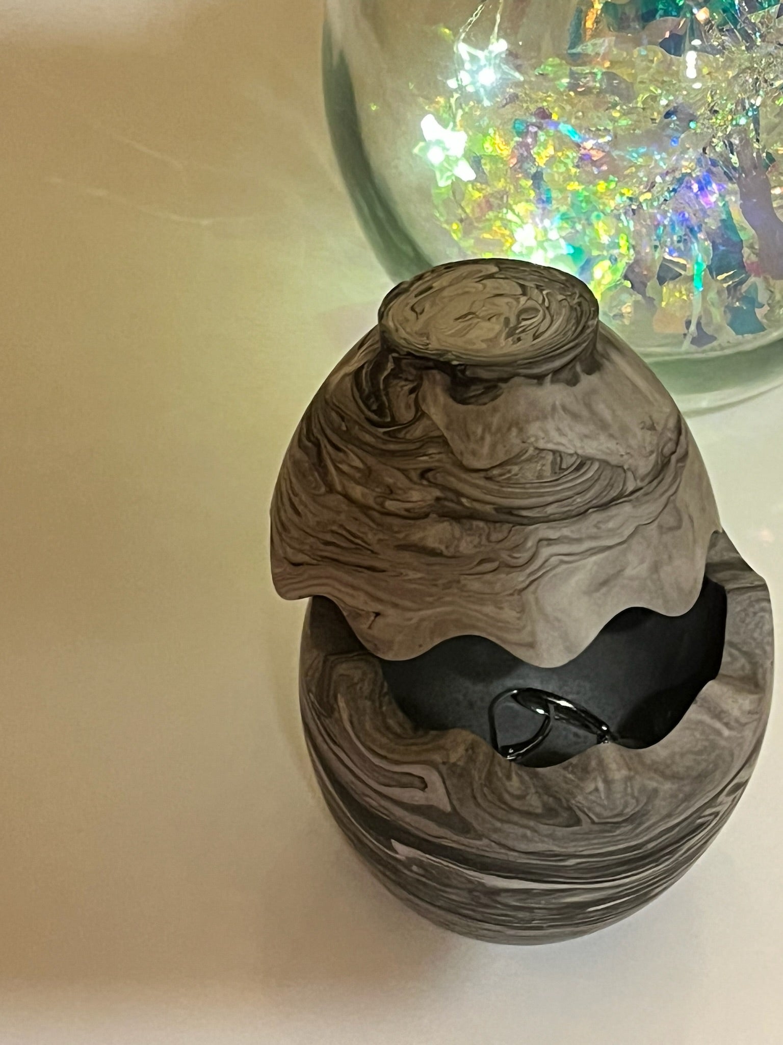 Cutie de bijuterii în forma de ou realizat din Jesmonite.